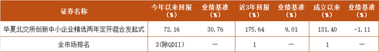 Wind数据显示,截至6月30日,华夏北交所创新中小企业精选两年定开基金(代码:014283),以72.16%的净值增长率位居全市场(除QDII)第3名;